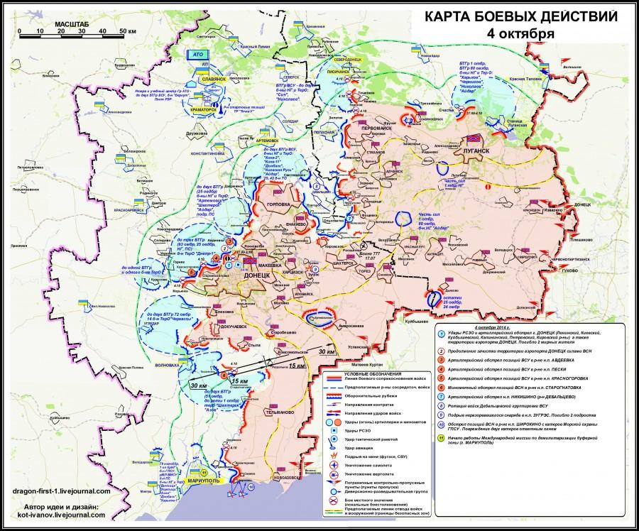 Народный депутат, председатель ОО "Гражданская инициатива" Валерий Омельченко проговорился о том, что анализ данных Единого реестра ущерба инфраструктуры в зоне АТО свидетельствует, что 67% разрушенных объектов Донбасса - это жилые дома. За каждым сообщением о разрушенном или поврежден дом стоят человеческие судьбы и жизни, и чем дольше продолжаются боевые действия, тем больше людей от этого страдает. Даже выбиты окна в наступающие холода - это беда для семьи. Но чаще люди пишут, что в результате обстрела в жилом доме проломлен крышу или вообще остались только стены. Анализ данных Единого реестра показывает, что 67% разрушенных объектов Донбасса - это жилые дома ", - признался Омельченко. Освобожденный от украинских оккупационных войск Иловайск Как передаёт 2 октября корреспондент РИА Новости с места событий, огонь по центру Донецка велся ракетными системами "Ураган". Кроме того, очевидцы сообщают, что от артиллерийского удара пострадали больница имени Вишневского, торговый центр и теннисные корты. При обстреле центра Донецка в четверг погиб представитель Красного Креста, гражданин Швейцарии Лоран Этьен. После гибели своего сотрудника МККК проявил верх цинизма и трусости закрыв свою миссию в ДНР. Карта боевых действий на 4 октября Увеличить
